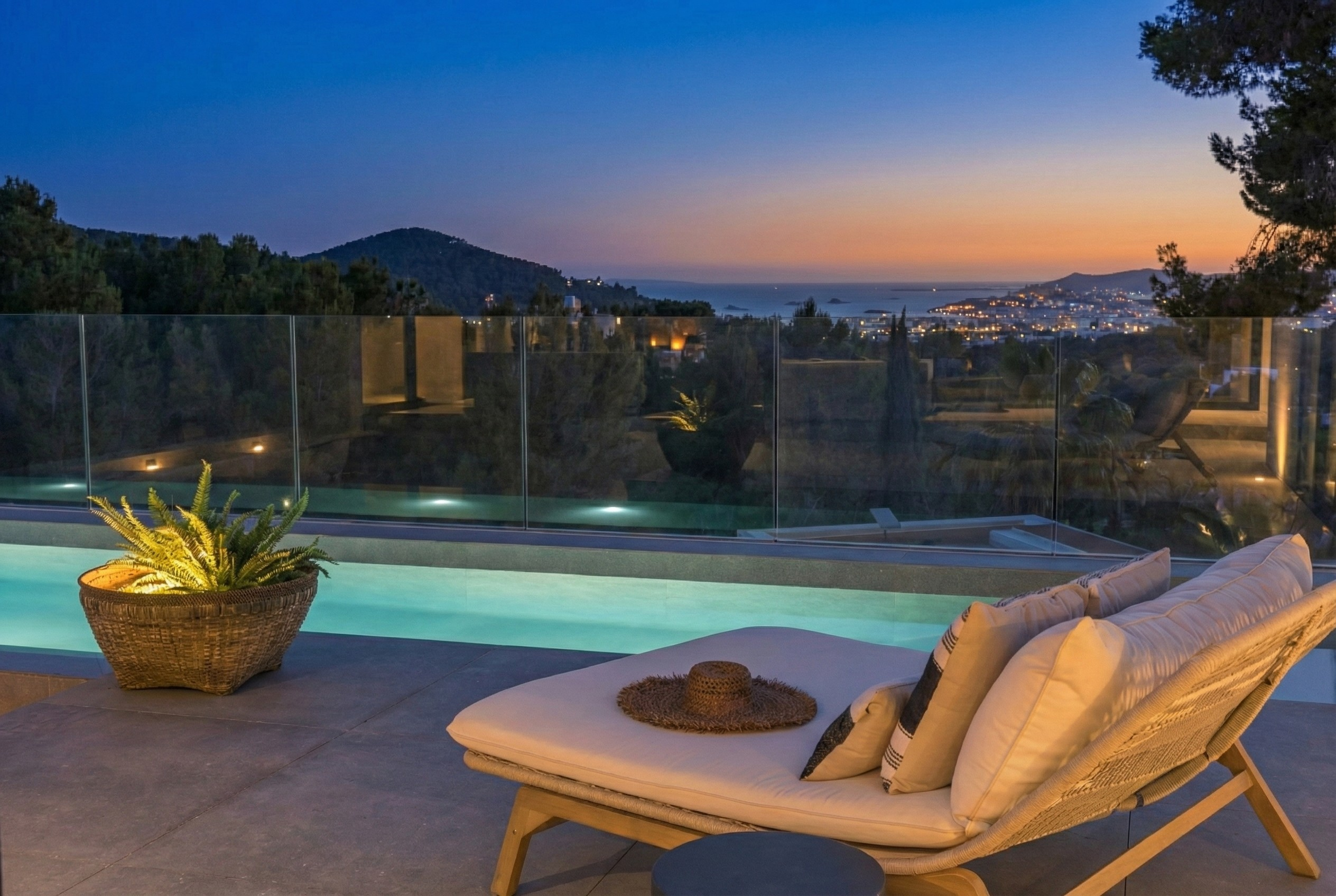 Commanding a prestigious hillside position, Villa Tauet is situated in Can Furnet, one of Ibiza’s most exclusive and secure residential enclaves. This tranquil neighbourhood offers the perfect sanctuary of peace and privacy, with the charming village of Jesús just minutes away for all your daily boutique shopping and artisan dining.